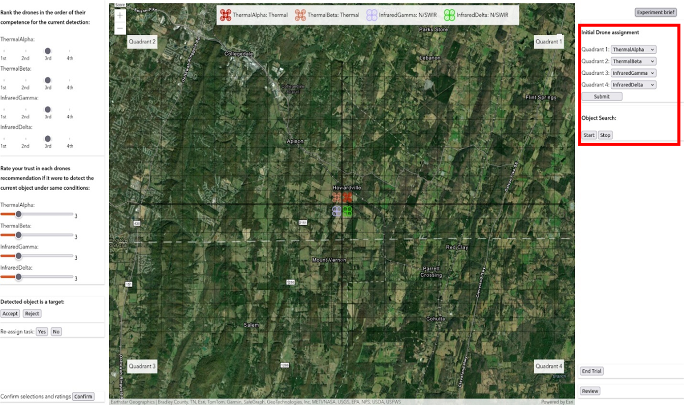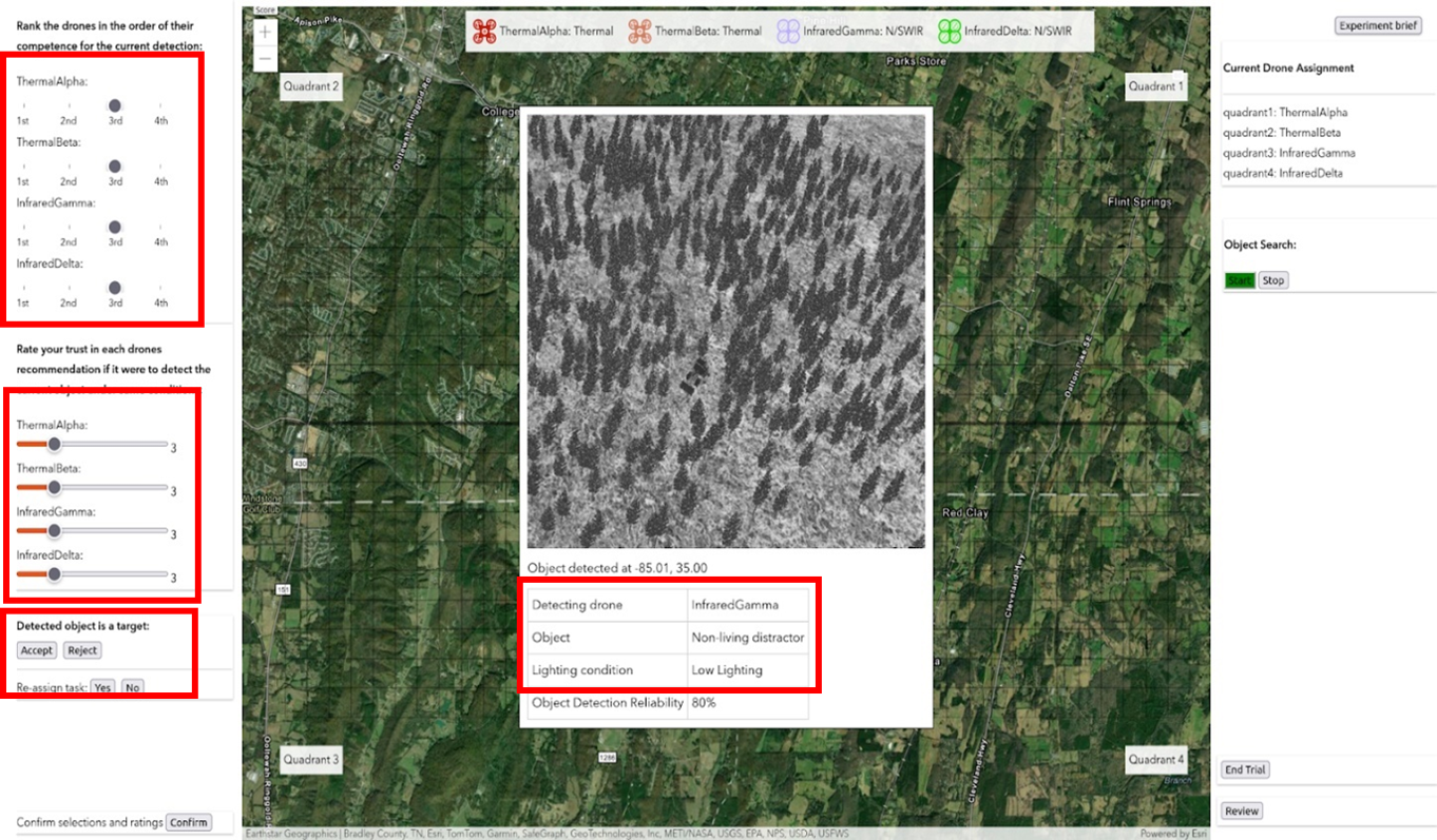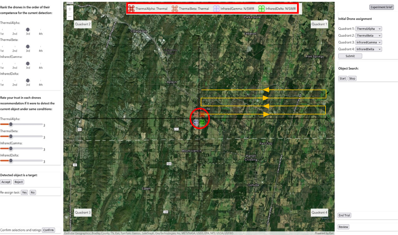 For each detection task, the platform facilitates the collection of the user’s trust and competence perceptions of the UAVs.