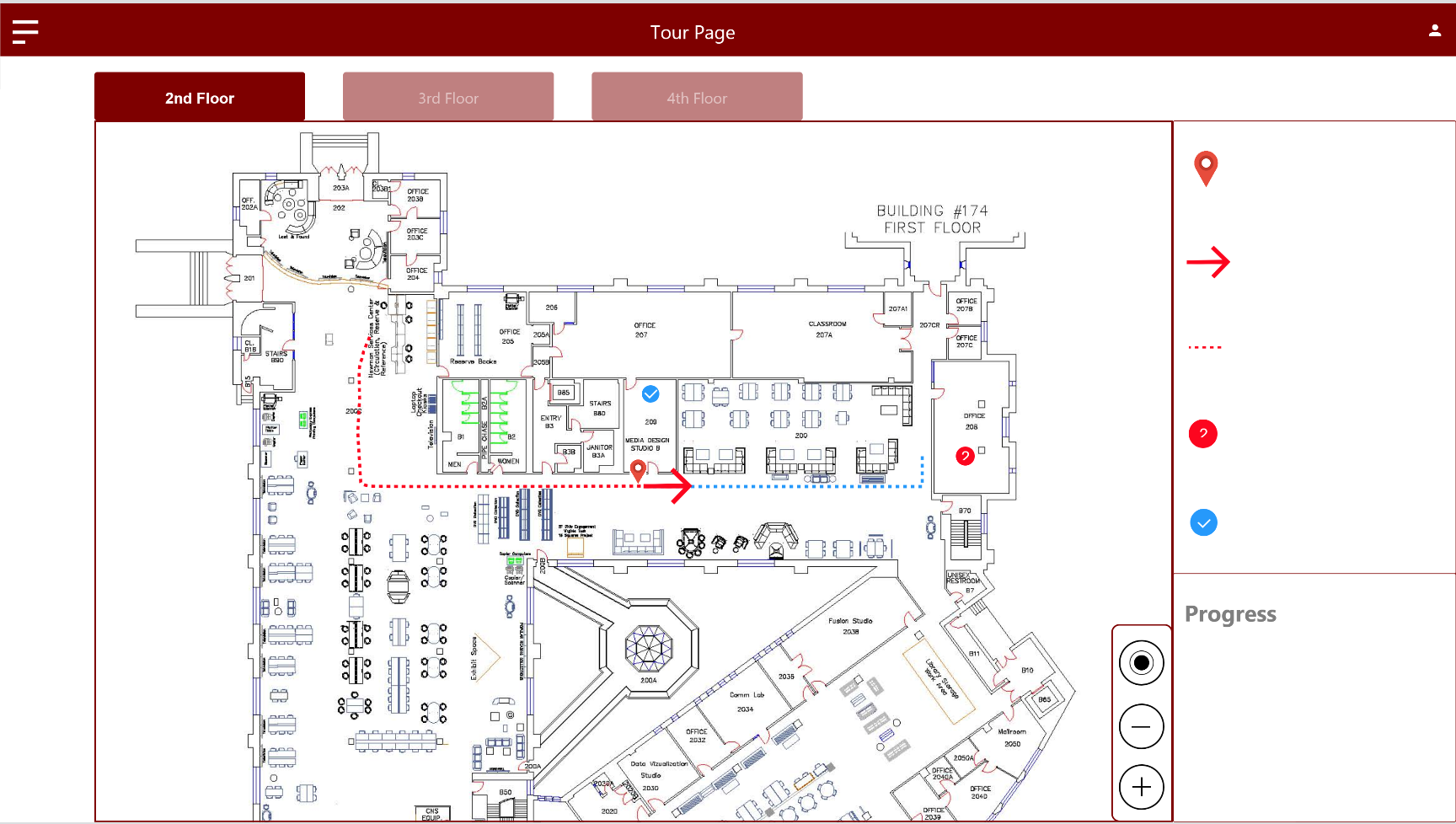 It acquaints campus visitors and new students with key library locations while engaging users via informational videos, quiz questions, and photo challenges.